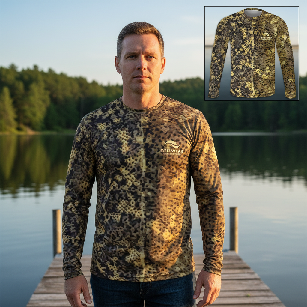 The Burbot Skin Long Sleeve Fishing Shirt features a realistic all-over fish skin design inspired by the marbled, mottled pattern of freshwater’s most misunderstood predator. Whether you call it eelpout, ling, or lawyer, this shirt honors the cold-water brawler that lurks below.
