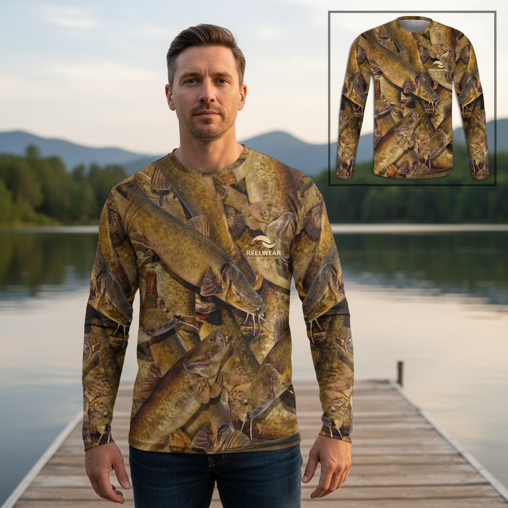The Flathead Catfish All-Over Print Long Sleeve Fishing Shirt is built for anglers who live for riverbanks, drift lines, and that heart-pounding moment when a true monster takes the bait. Featuring a full-body, lifelike wrap of flathead catfish across the front, back, and sleeves, this realistic flathead catfish shirt captures the mottled colors, powerful frame, and unmistakable whiskered look of one of freshwater’s most legendary bottom feeders.