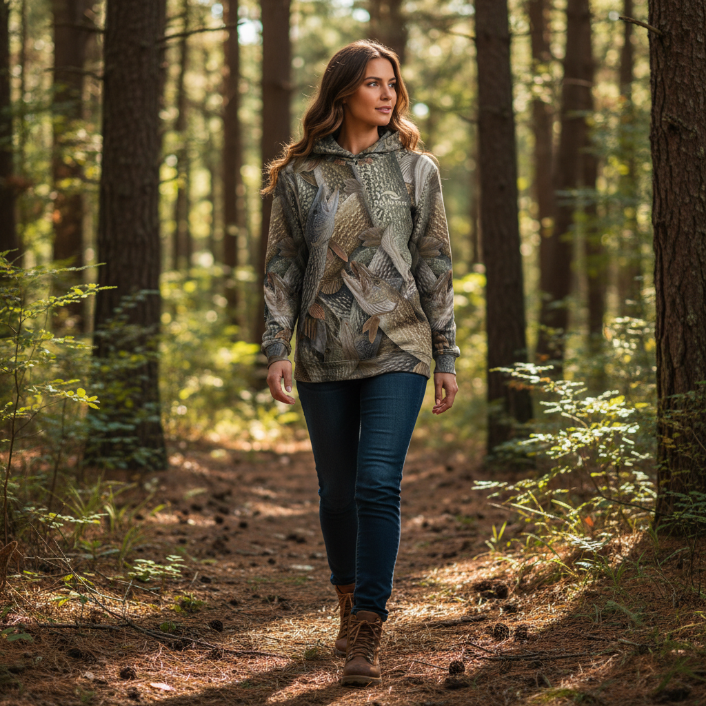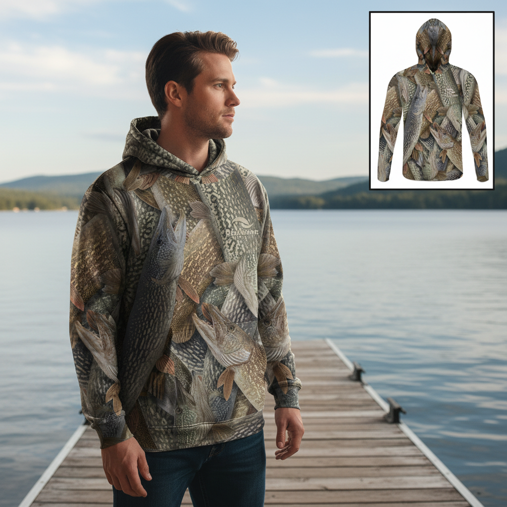 The Northern Pike Hoodie is made for those who chase teeth, tangle with torpedoes, and know that when a pike hits, it hits hard. Featuring a vivid, realistic full fish wrap of northern pike across the front, back, and sleeves, this hoodie captures the power, attitude, and signature markings of one of freshwater’s most aggressive predators.