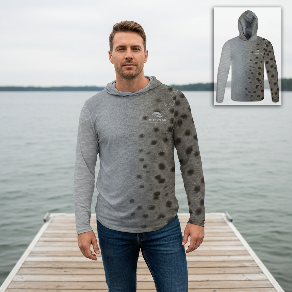 The Sea Trout Fish Skin Hoodie captures the sleek, stealthy look of a predator built for speed and subtlety. Wrapped in a realistic all-over sea trout skin pattern, this hoodie features the cool silvers, faint spotting, and soft blue-green tones that mirror its namesake’s elusive style in shallow coastal waters and brackish estuaries.