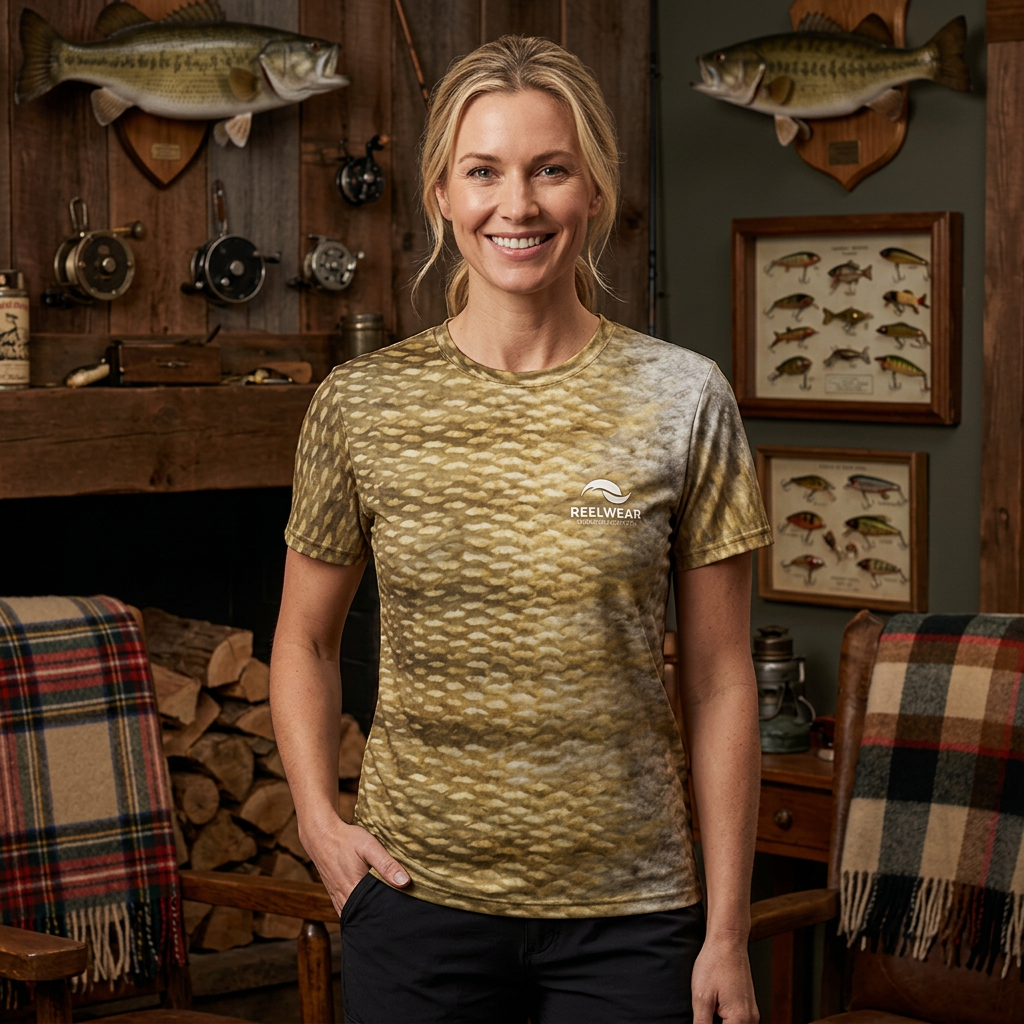 The Smallmouth Bass Skin T-Shirt is made for the ones who chase current seams, rocky points, and heart-pounding surface hits. Featuring a realistic all-over smallmouth bass skin pattern, this shirt wraps you in bronze tones, speckled scales, and the unmistakable look of the hardest-fighting bass in freshwater.