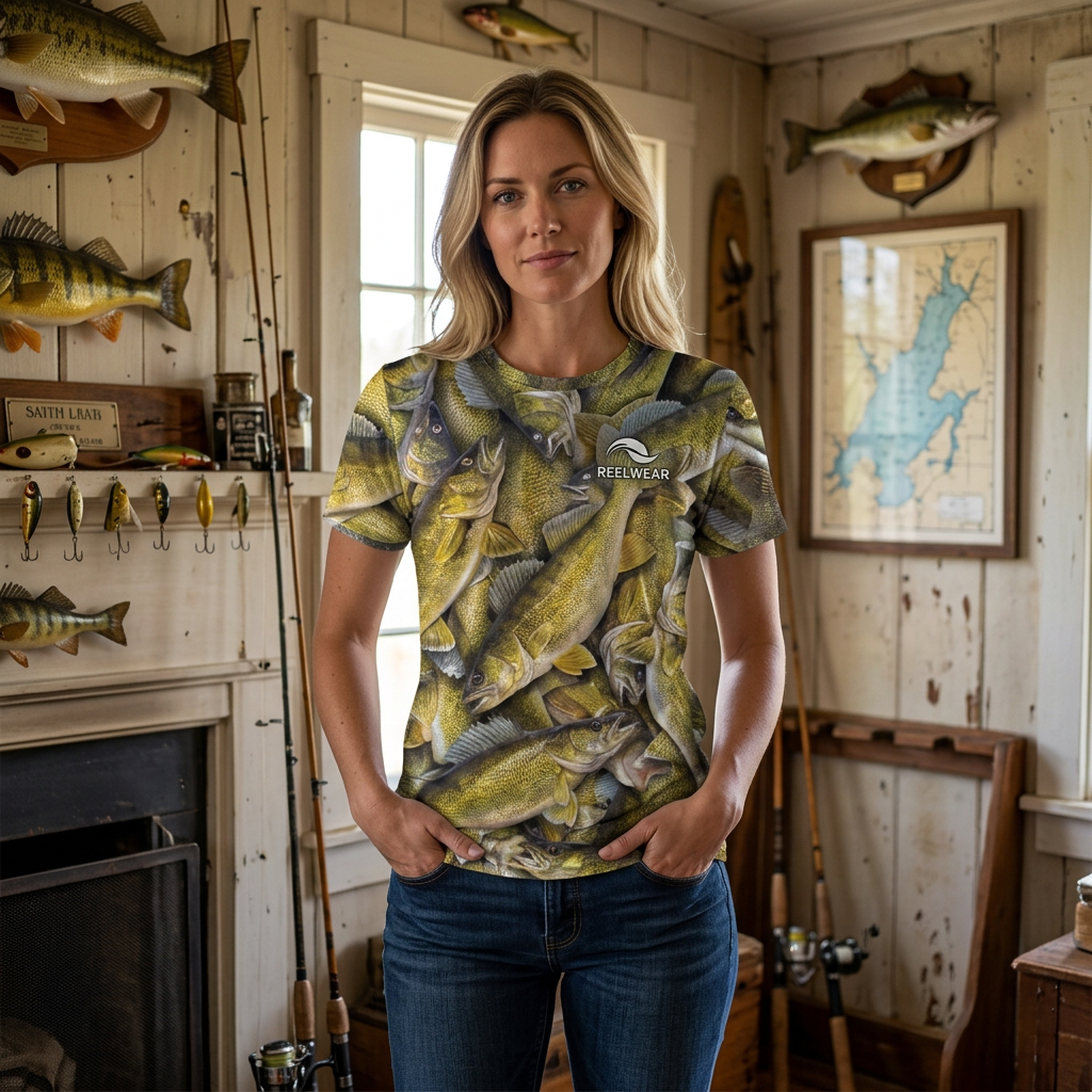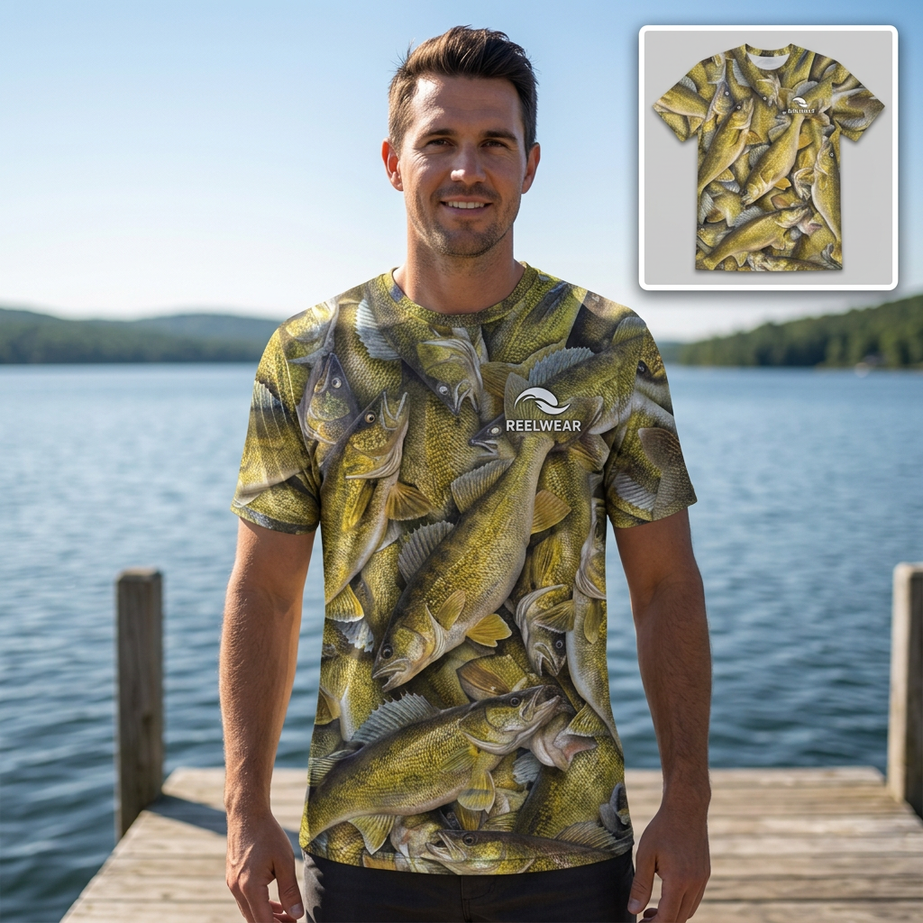 ✅ Full Fish Wrap Design – Realistic walleye surround the shirt in seamless, head-turning style